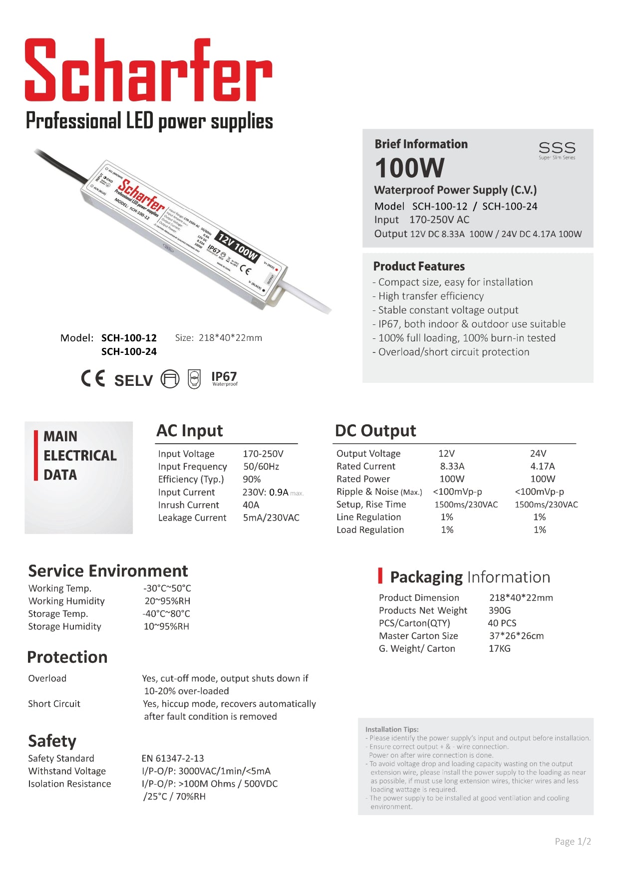 Maximal kraft, minimal oro! Vår transformator omvandlar smidigt 170-250V AC till 24V DC med kraftfulla 100W och 4,17A. Med IP67-klassning står den emot utmanande förhållanden, dammtät och vattentät. Det eleganta aluminiumhöljet inte bara skyddar enheten utan garanterar även effektiv värmeavledning. Perfekt för utomhus- och marina användningar. Ge dina enheter pålitlig kraft och njut av oöverträffad prestanda. Upplev kraften och tillförlitligheten med vår transformator!